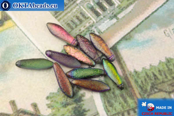 Czech daggers beads blue vitrail matte antique (00030/95100E) 5x16mm, 10pc