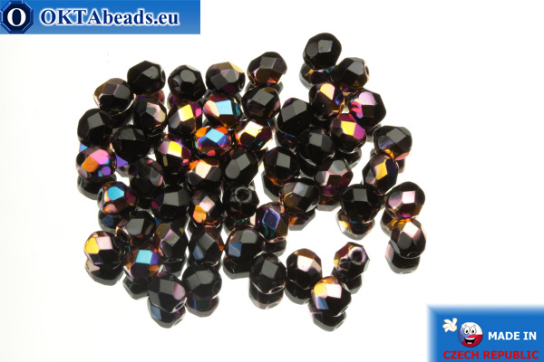 Czech fire polished beads black iris (VX23980) 4mm, 50pc