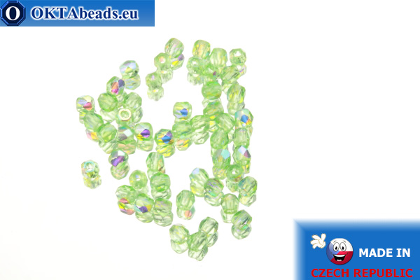 Czech fire polished beads chartreuse AB (X50520) 3mm, 50pc