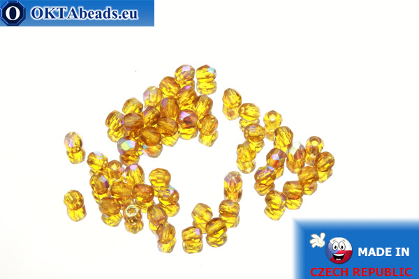 Czech fire polished beads topaz AB (X10100) 3mm, 50pc