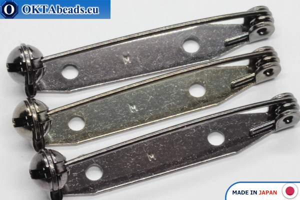Jewellery brooch pin bar Japan Hematite 35mm, 1pc