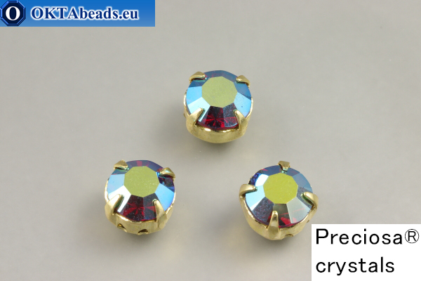 Sew on Preciosa chaton Maxima in set Light Siam AB - Gold ss34/7,25mm, 1pc