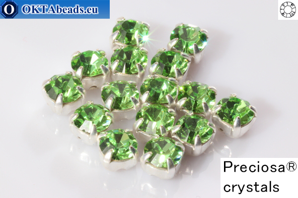 Specification -czech crystal sew on chaton in set (4 hole), color - Peridot - silver