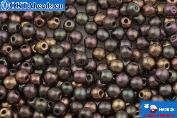 Velikost - 3mm Velkoobchodní balení ~667ks (brutto 26g) Provedení - české kulaté korálky, barva - měď matný Země výroby – Česko..